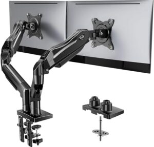 Enhance your workspace with the HUANUO FlowLift™ Dual Monitor Stand, designed for 13–32" screens. This mount, featuring VESA 75x75/100x100 compatibility, allows for full motion adjustments including +85° tilt and 360° rotation, ensuring a comfortable viewing experience. Its sturdy dual C-clamp base ensures stability, supporting weights from 4.4 to 19.8 lbs. Ideal for wooden desks with a thickness of 0.59" - 3.54", it promotes an organized workspace by elevating your monitors, freeing up desk space. The built-in cable management keeps your area tidy, making it perfect for gaming, working, or video calls. Say goodbye to clutter and hello to comfort!