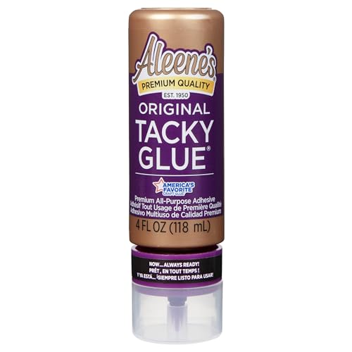 Aleene’s Always Ready Original Tacky Glue 4 fl. oz. – 4 fl. oz. bottle of Aleene’s Original Tacky Glue with inverted cap stand and no-cut tip; thick, versatile glue dries permanent and clear for all your crafting, hobby, and DIY projects.